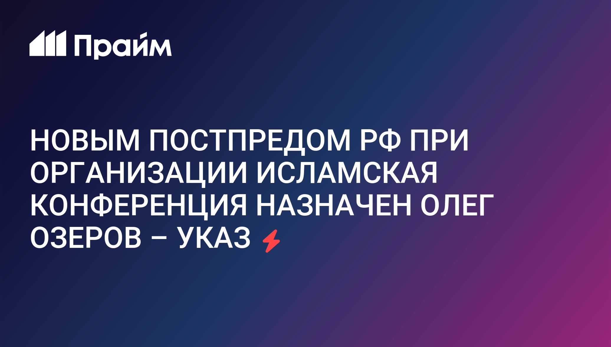 НОВЫМ ПОСТПРЕДОМ РФ ПРИ ОРГАНИЗАЦИИ ИСЛАМСКАЯ КОНФЕРЕНЦИЯ НАЗНАЧЕН ОЛЕГ ОЗЕРОВ – УКАЗ