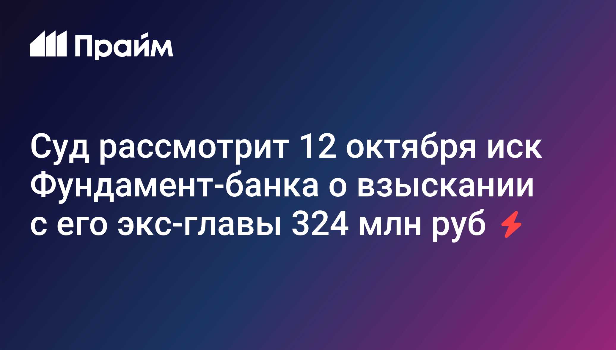 Суд рассмотрит 12 октября иск Фундамент-банка о взыскании с его экс-главы 324 млн руб - 19.12.2012, ПРАЙМ