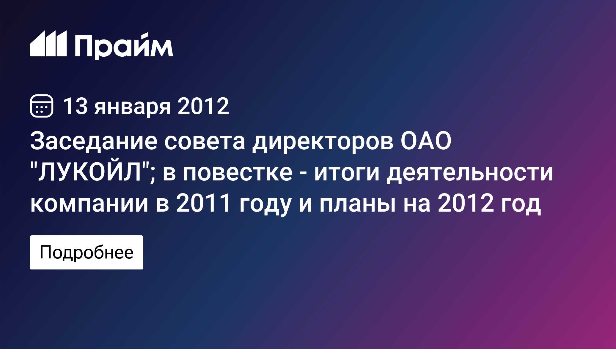 Заседание совета директоров ОАО "ЛУКОЙЛ"; в повестке - итоги деятельности компании в 2011 году и планы на 2012 год - 11.12.2012, ПРАЙМ