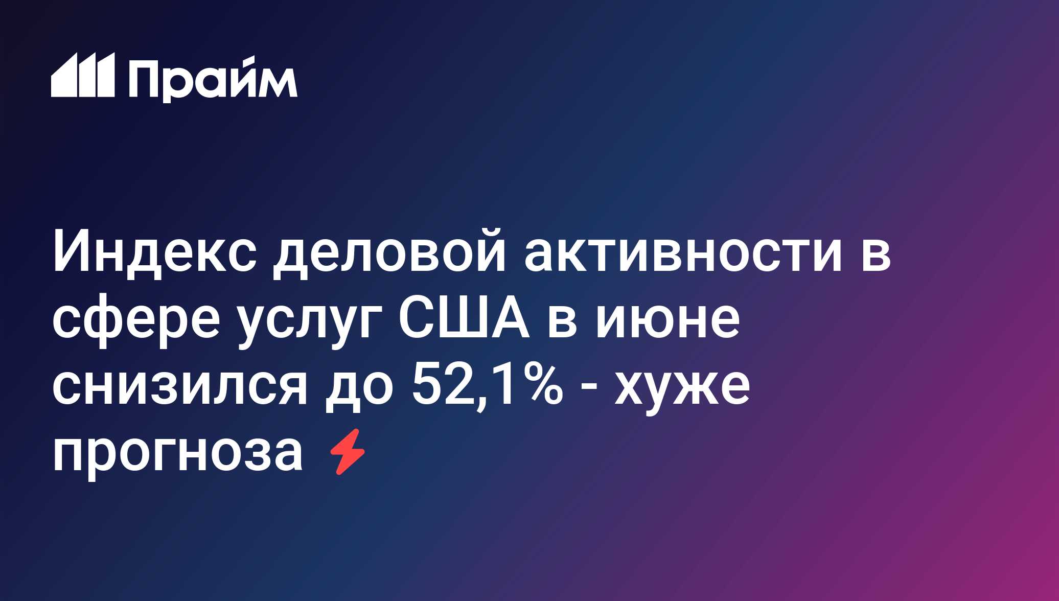 Индекс деловой активности в сфере услуг США в июне снизился на 1,6 процентного пункта - до 52,1% с 53,7% в мае, свидетельствуют данные американского Института управления поставками (Institute for Supply Management, ISM)