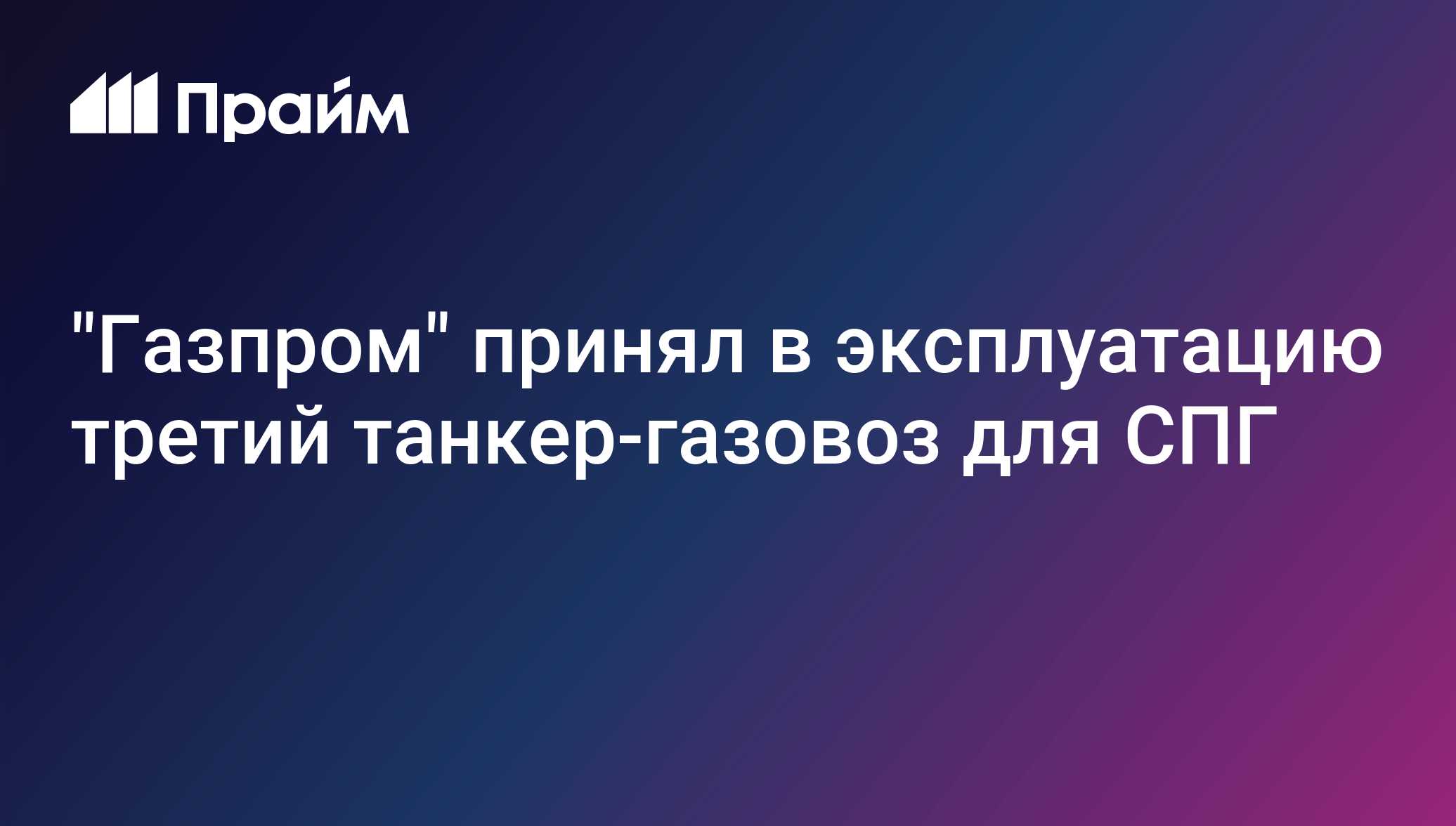 "Газпром" принял в эксплуатацию третий танкер-газовоз для СПГ