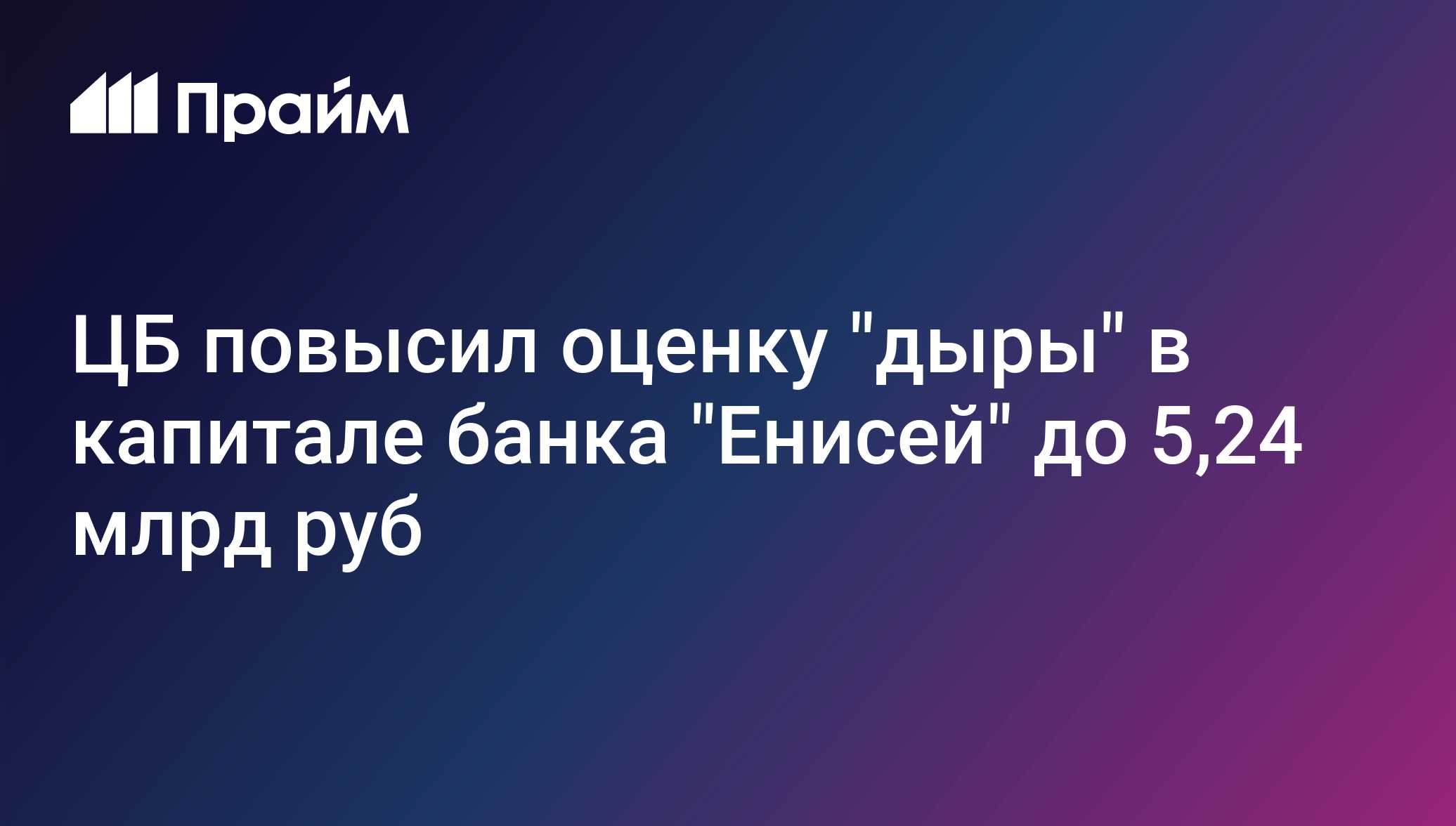 МОСКВА, 10 мая - ПРАЙМ. Банк России увеличил оценку "дыры" в капитале лишившегося лицензии красноярского банка "Енисей" до 5,241 миллиарда рублей с 4,787 миллиарда рублей, сообщается в материалах ЦБ.