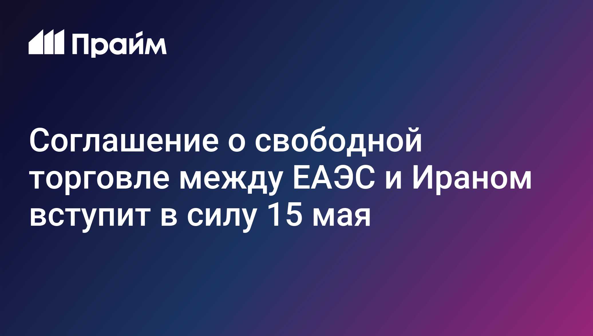 Соглашение о свободной торговле между ЕАЭС и Ираном вступит в силу 15 мая - 19.03.2025, ПРАЙМ