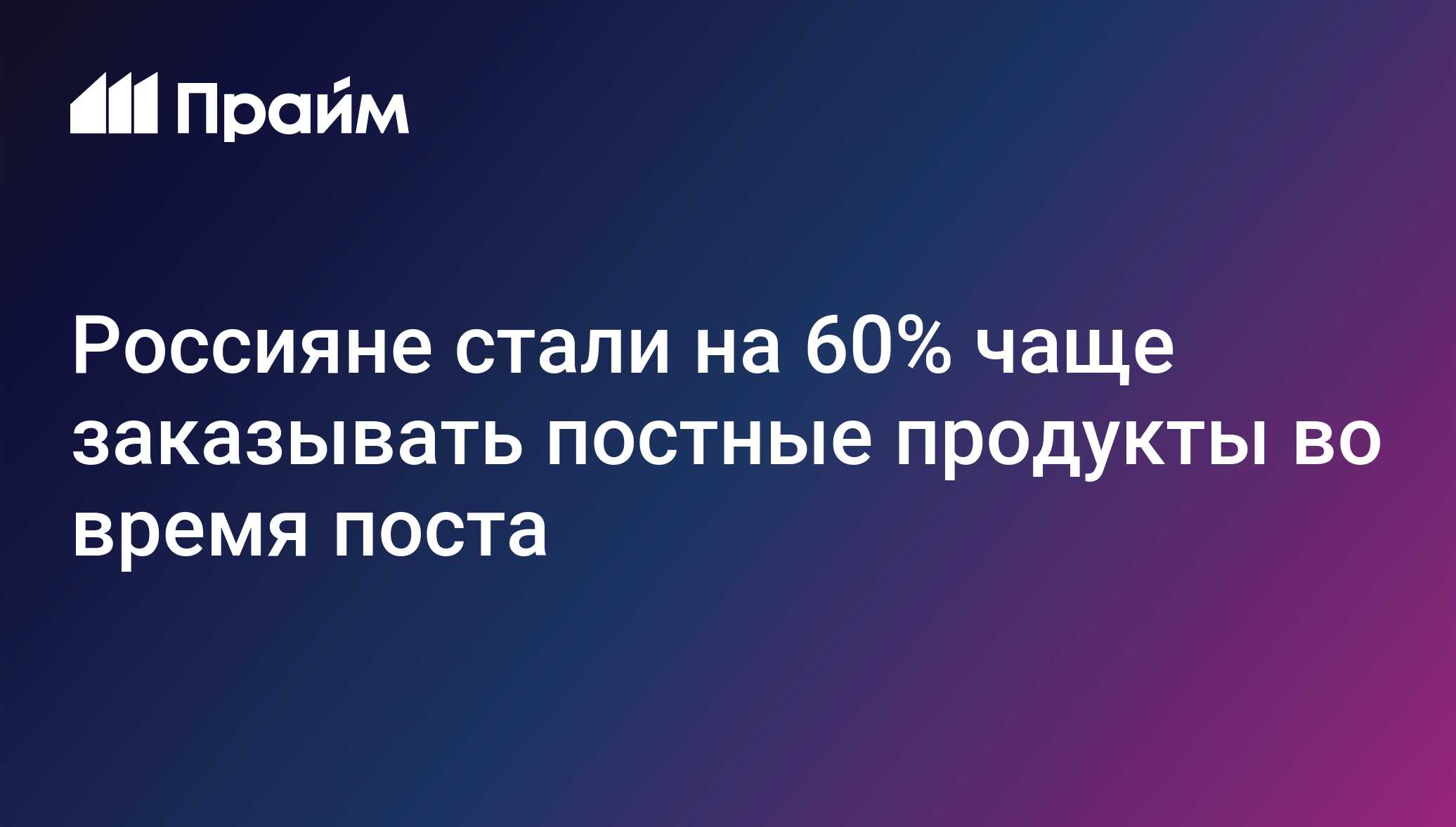 Россияне стали на 60% чаще заказывать постные продукты - готовые блюда без продуктов животного происхождения и продукты с альтернативным составом - во время... | 07.04.2025, ПРАЙМ