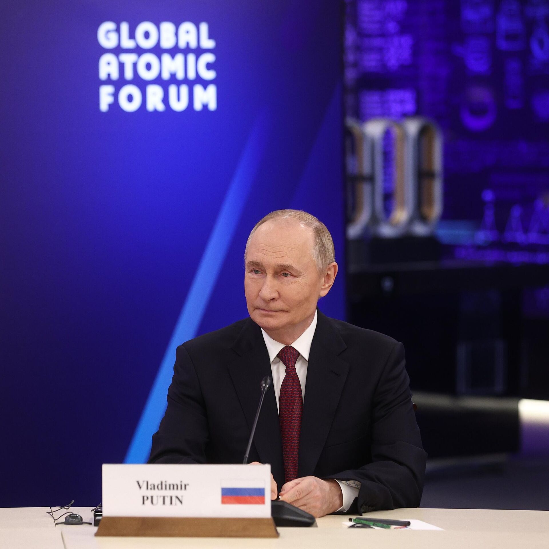 Президент России Владимир Путин на пленарном заседании международного форума "Мировая атомная неделя" на ВДНХ