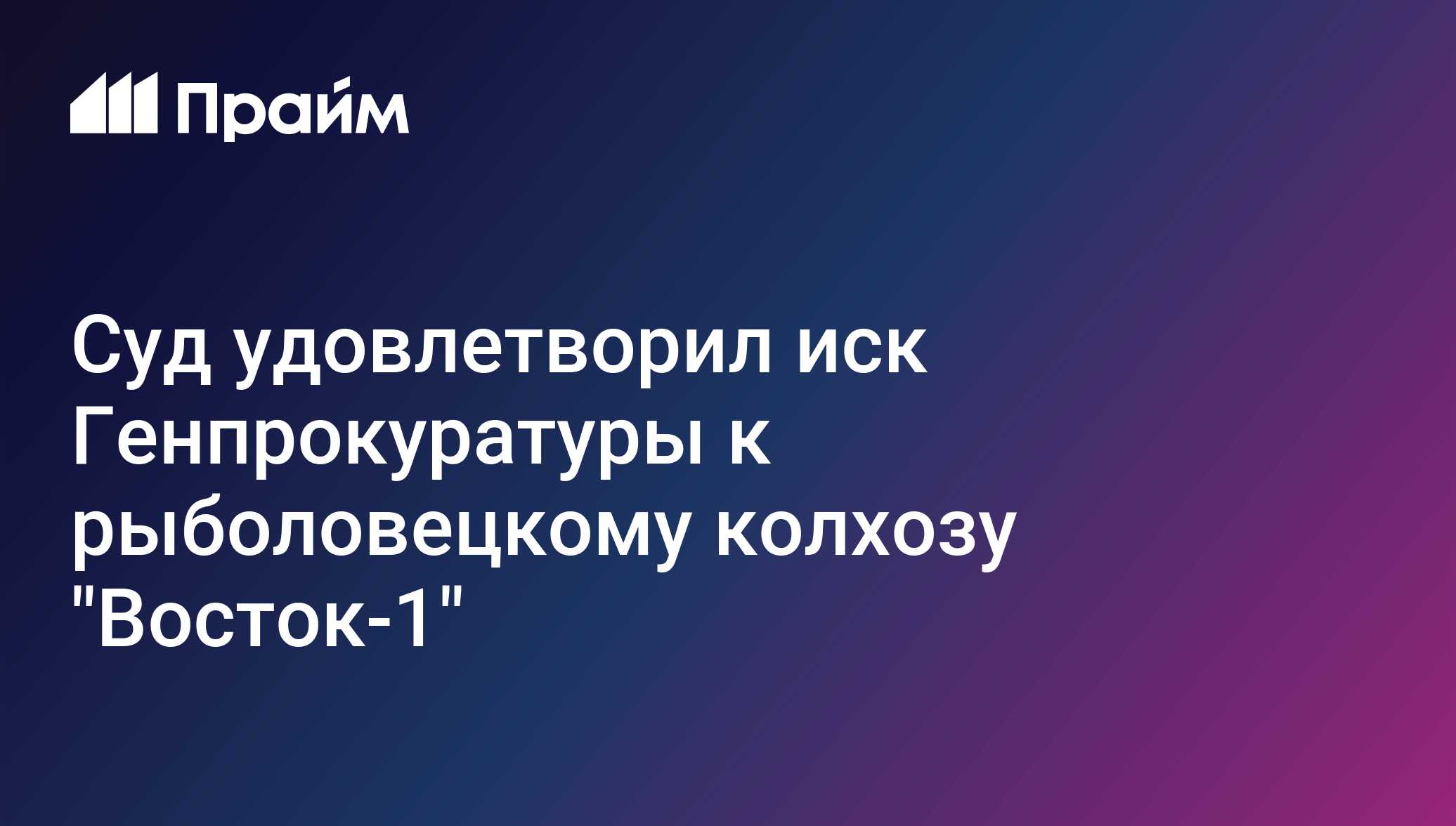 Суд удовлетворил иск Генпрокуратуры к рыболовецкому колхозу "Восток-1" - 31.10.2025, ПРАЙМ