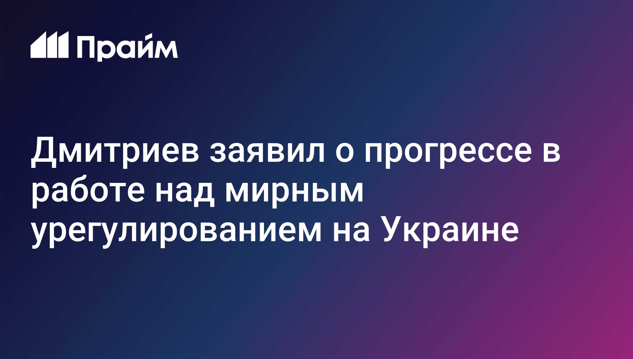 Дмитриев заявил о прогрессе в работе над мирным урегулированием на Украине