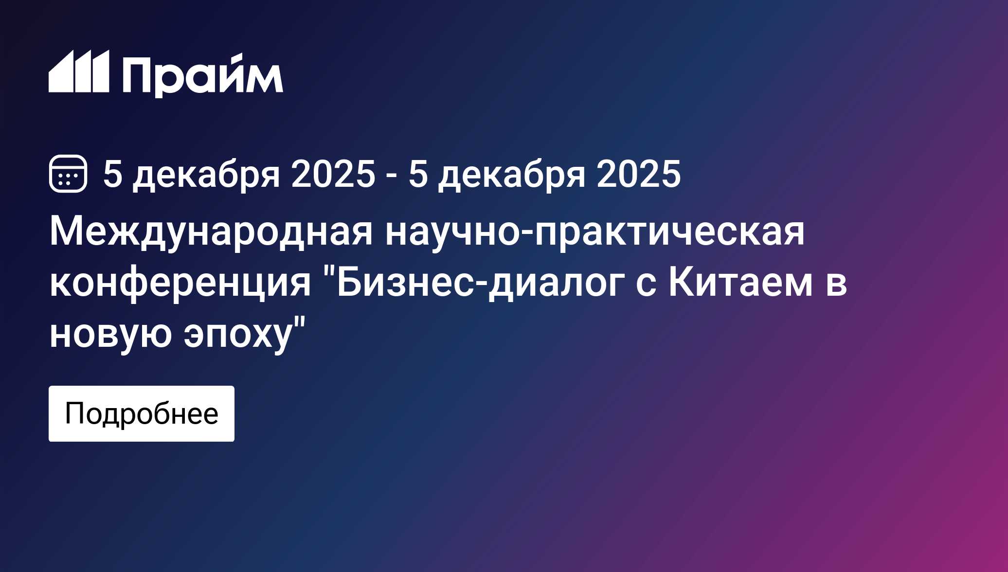 Международная научно-практическая конференция "Бизнес-диалог с Китаем в новую эпоху" - 26.11.2025, ПРАЙМ
