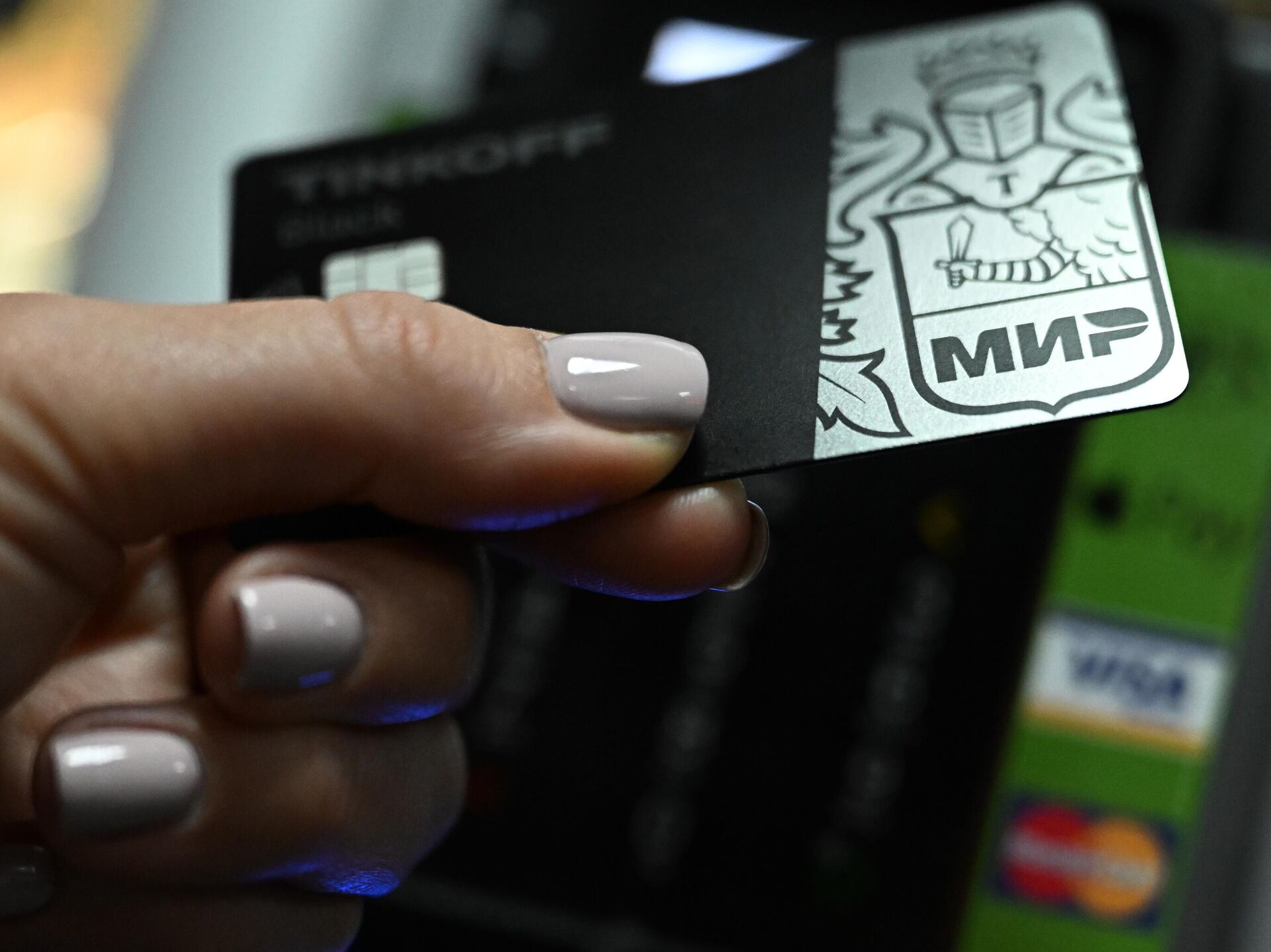 Девушка расплачивается картой российской национальной платежной системы "Мир". Архивное фото